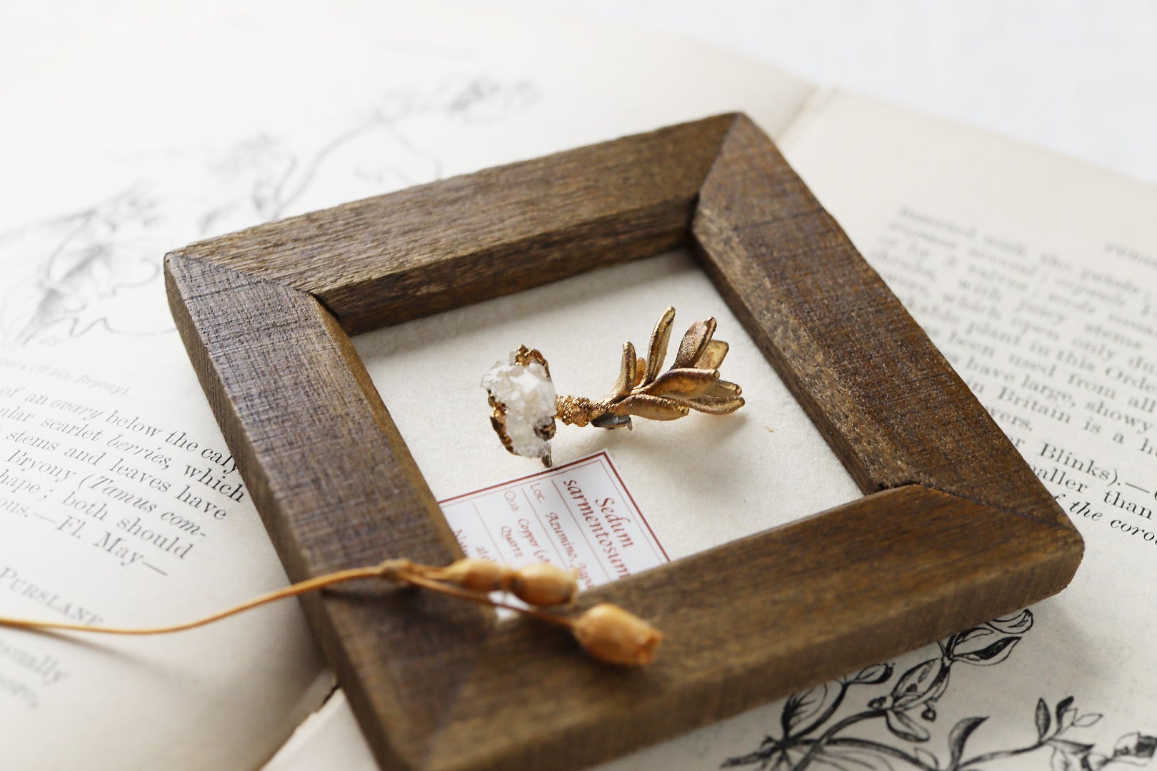植物標本ブローチ 〜ツルマンネングサと水晶原石