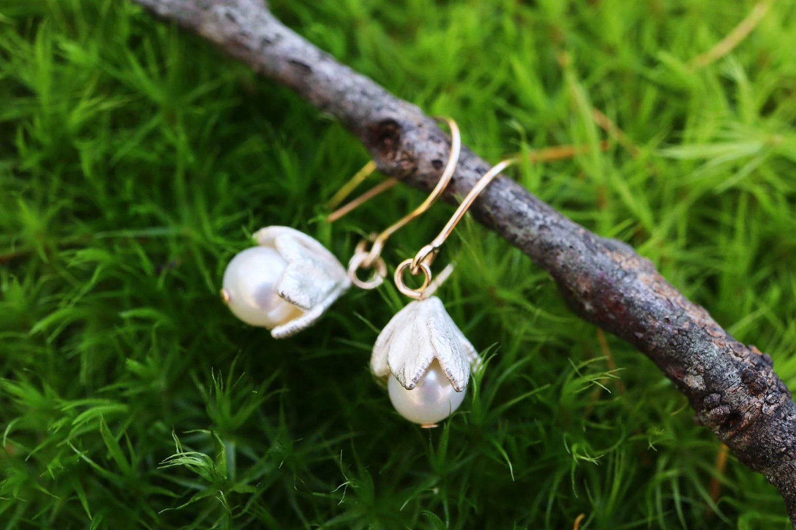 これからひらく静かな蕾をイメージした耳飾り。