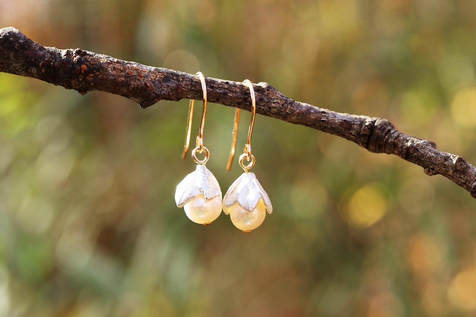 つぼみと淡水パール ピアス/イヤリング