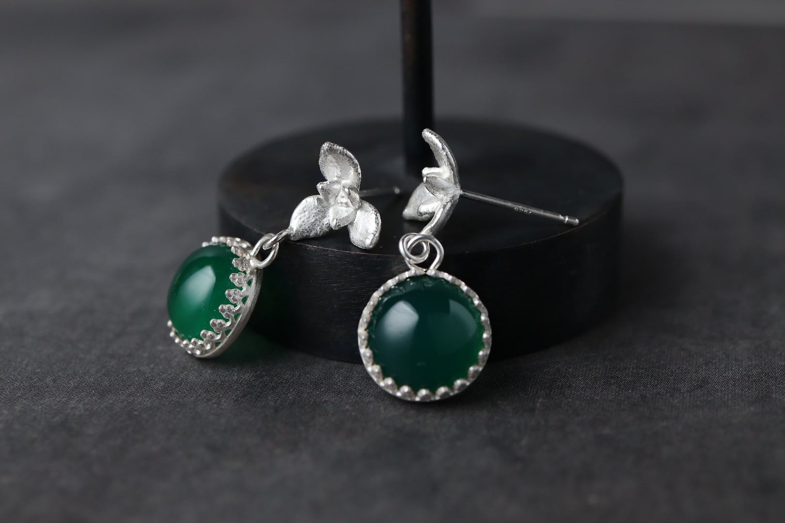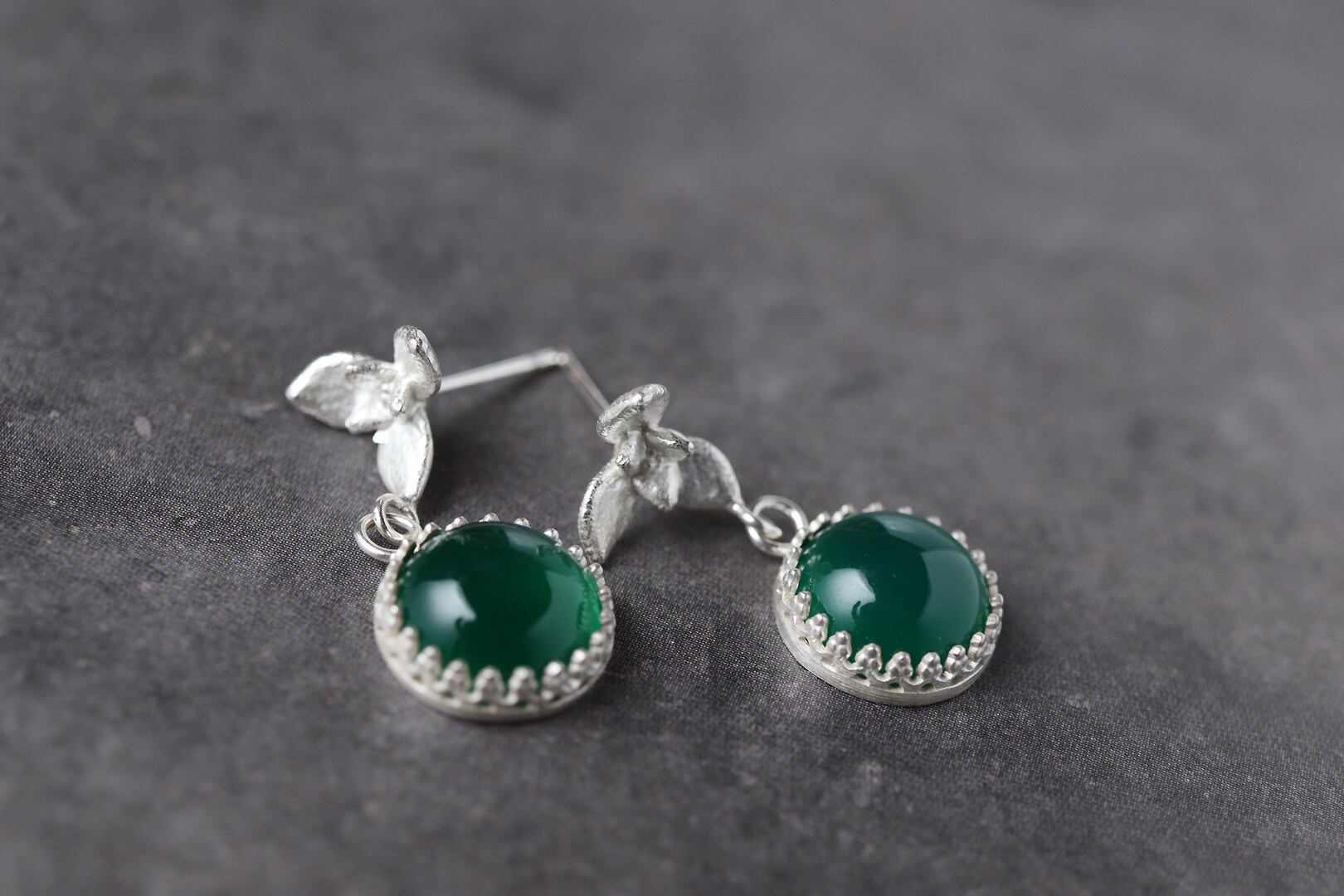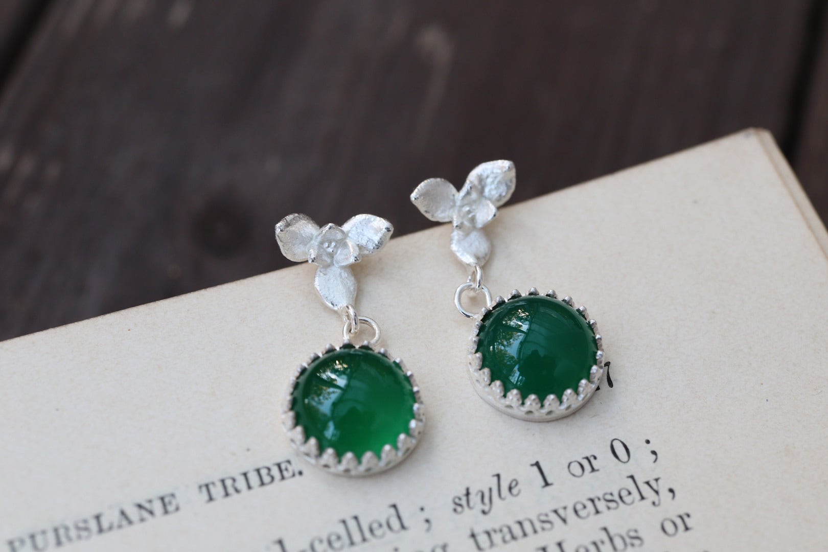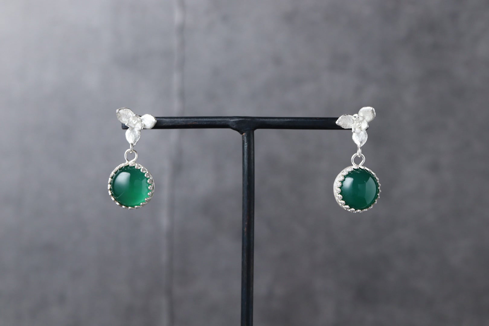 その野草の姿に、瑞々しい輝きをもつグリーンオニキスを合わせた耳飾りです。