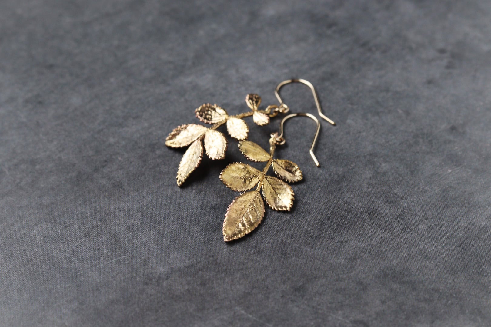 素朴な美しさを持つノイバラの葉の耳飾り。