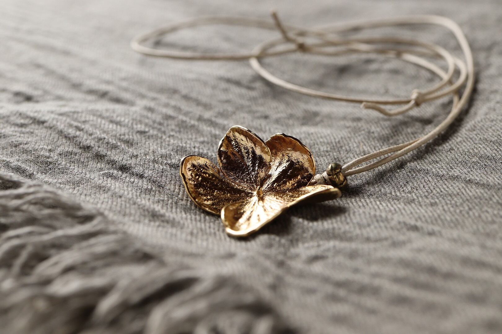 動きのある花弁が表情豊かな紫陽花のペンダント。