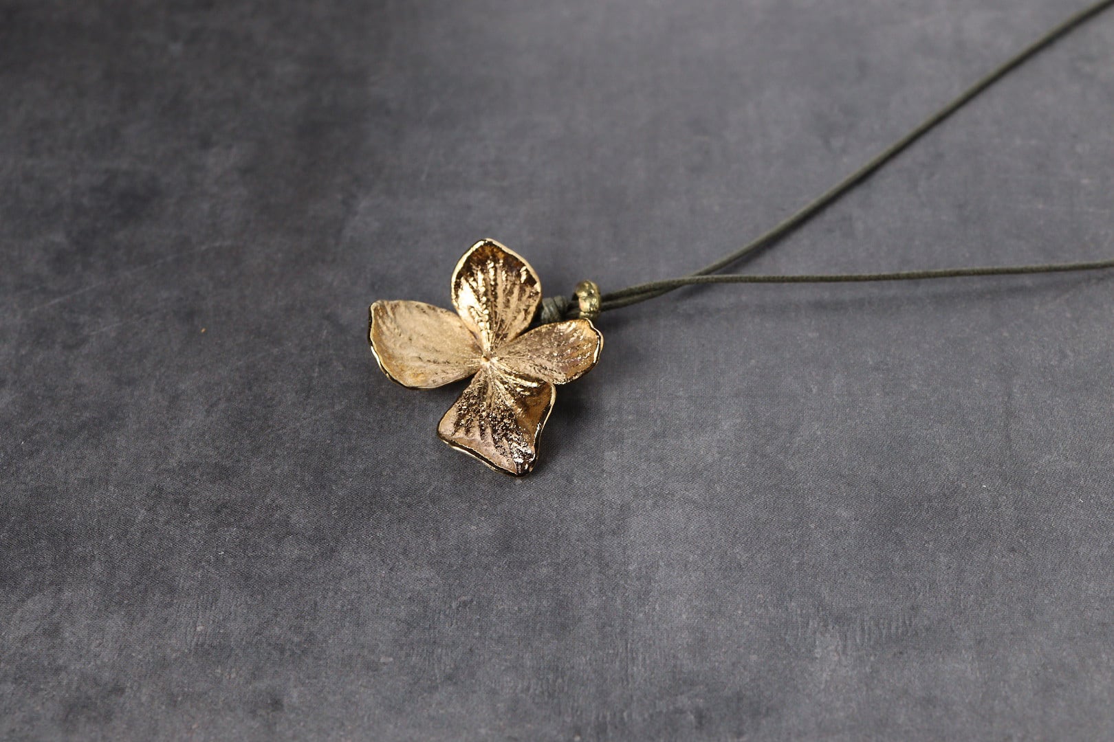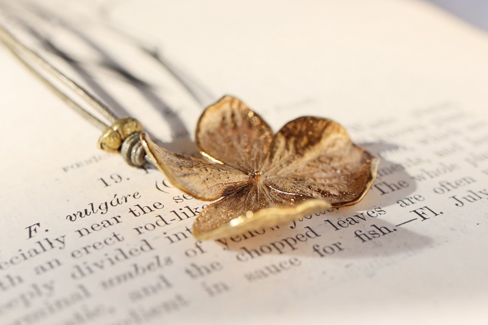 動きのある花弁で表情豊かな紫陽花のペンダント。