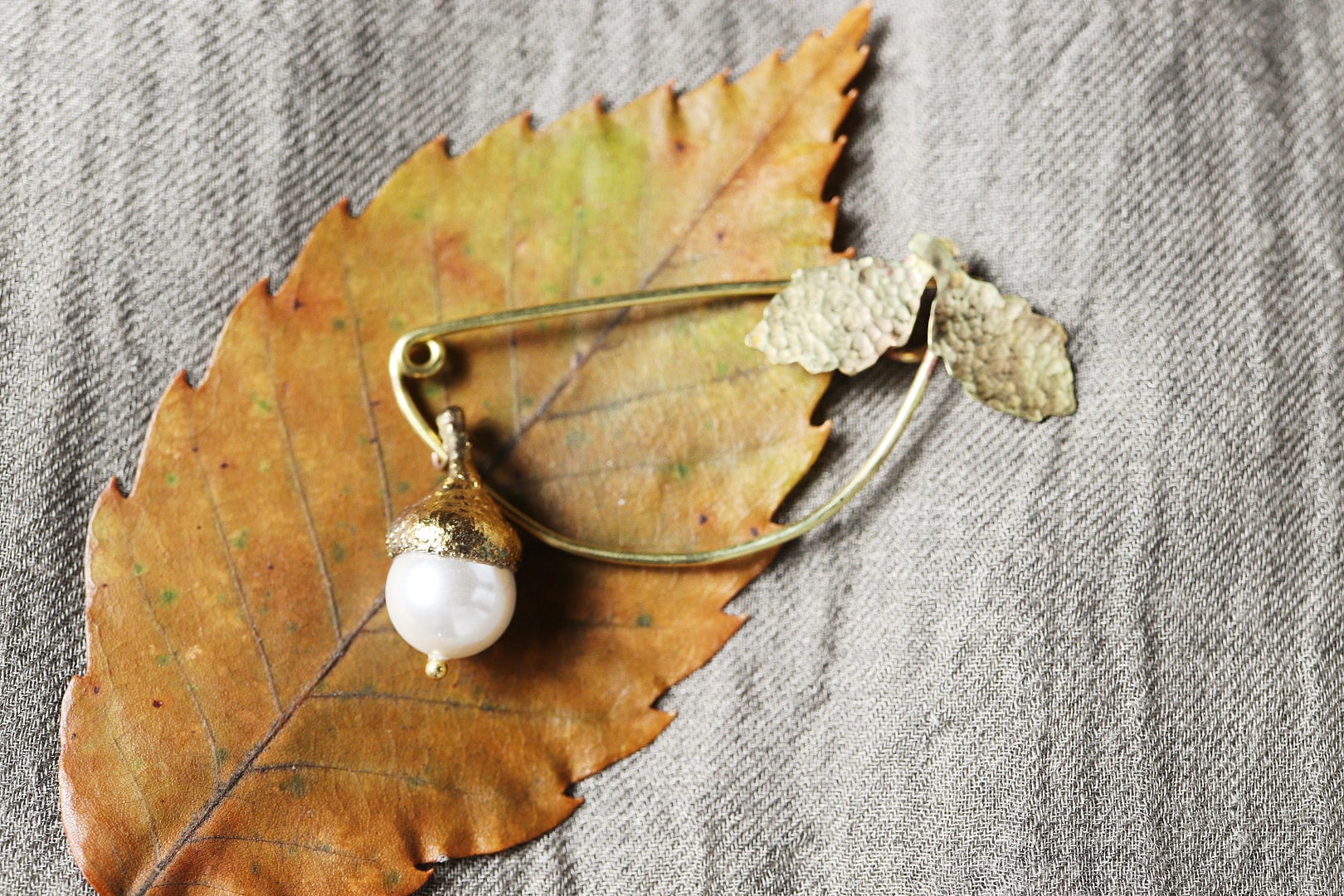 ドングリのブローチ[パール]