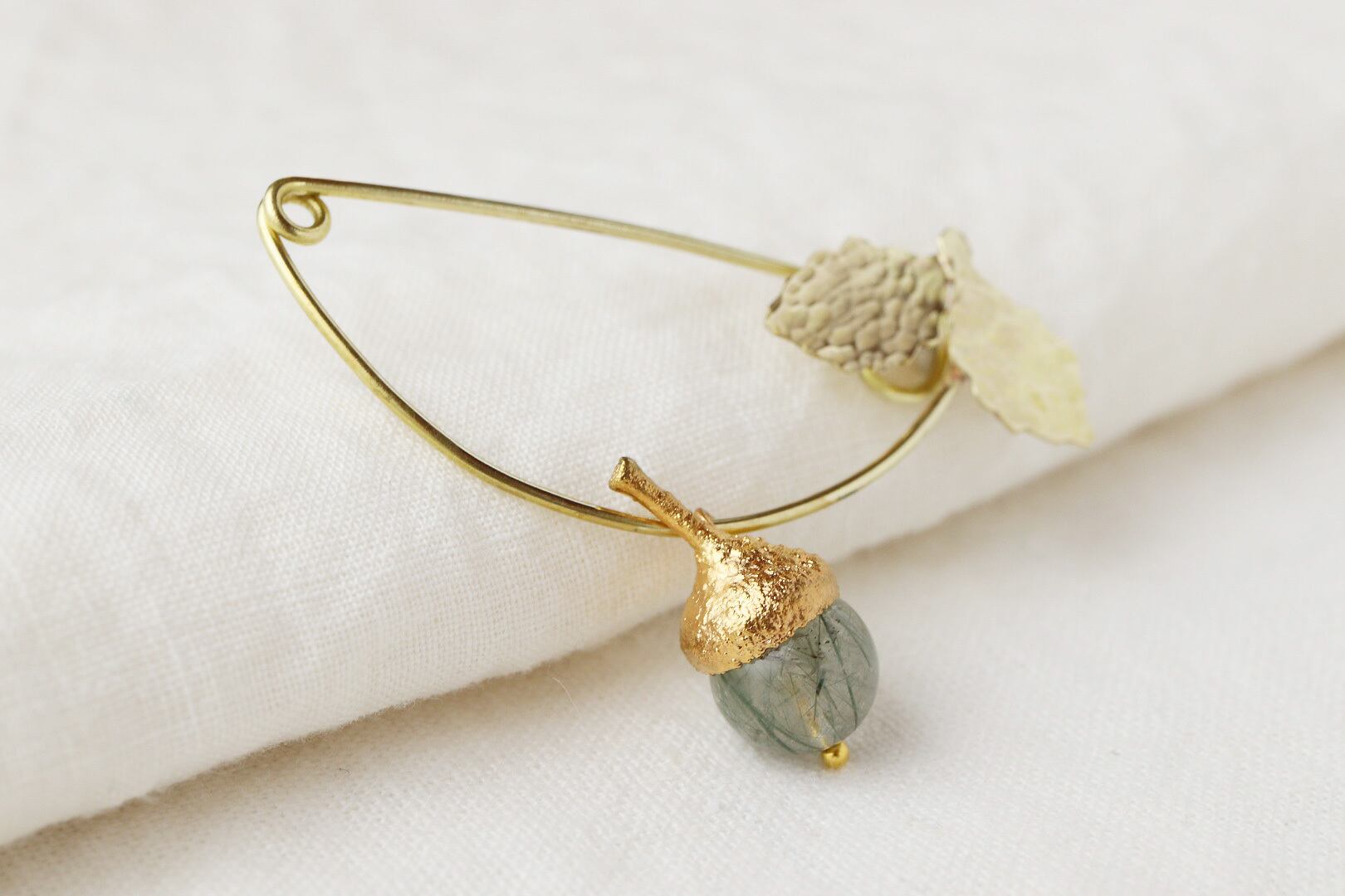 どんぐりのブローチ [針水晶 〜モスグリーン]