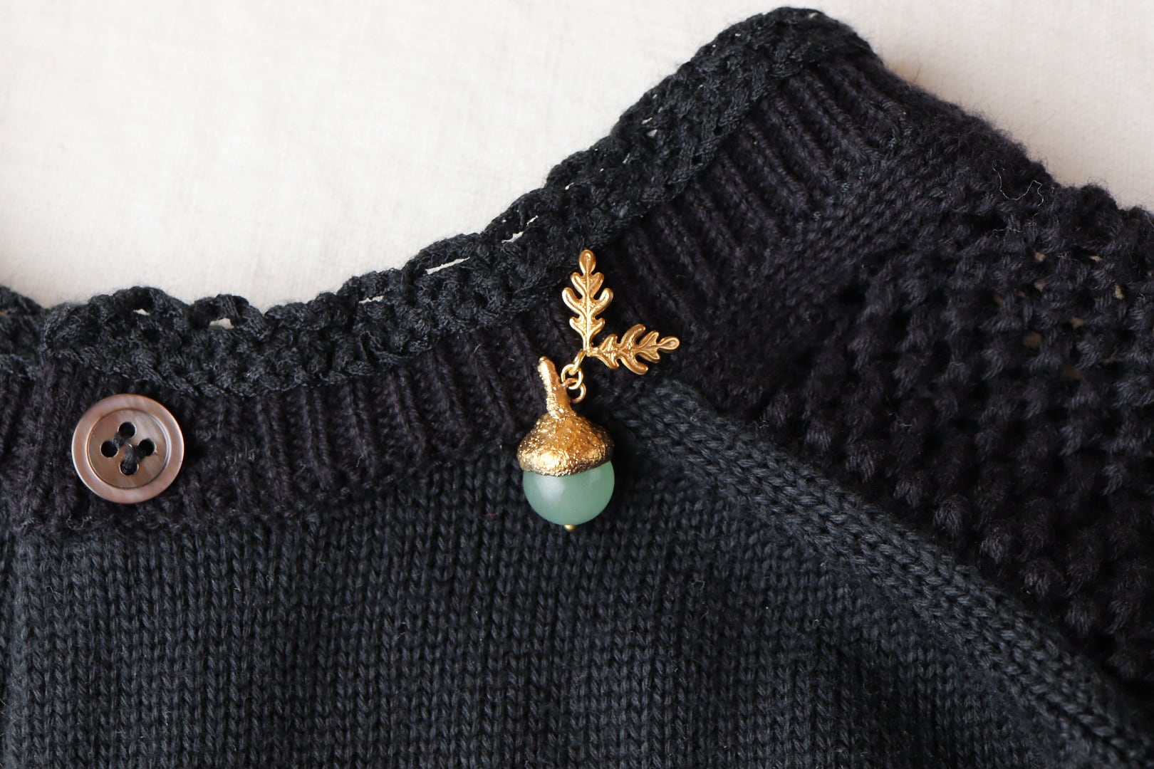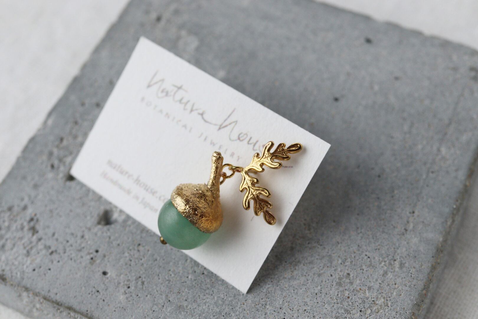 どんぐりのピンバッジ [グリーンアベンチュリン]
